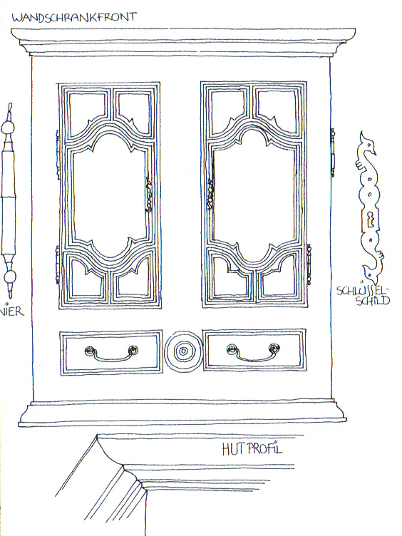 Im Obergeschoss sind viel Schlafstuben vorhanden, die ebenfalls mit sichtbaren Deckenbanken überspannt sind. Ein besonderer Hinweis verdient ein original vorhandener Wandschrank in qualitäsvoll zeitgenössischer Ausführung aus Obstholz. Über eine hölzerne Stiege gelangt man zum Speicher mit seinem Dachstuhl aus Eichenholz. Nach Überlieferungen von Irmgard Nickles wurde auch dieser Speicher wohl aus Platzgründen zur Fruchaufbewahrung genutzt. Außer dem gefliesten Flur waren sämtliche Böden des Hauses mit Holzdielen ausgeführt.