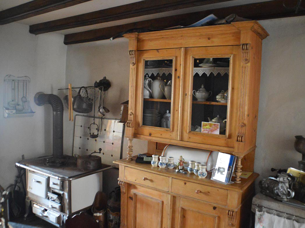 Dicke schwarze Rauchspuren, die heute hinter dem Putz verborgen sind und sich im Dachstuhl fortsetzen, lassen auf eine Erdfeuerstelle mit großem Rauchfang, den so genannten Harst, wie er auch im Saarland im 18. Jahrhundert durchaus üblich war, schließen. Ähnlich wie bei den Lothringer Häusern war ein Backofen mit Feueröffnung zur Küche von außen zur Hofseite angeschuht. Dies belegen auch die Überlieferungen der Nachfahren.