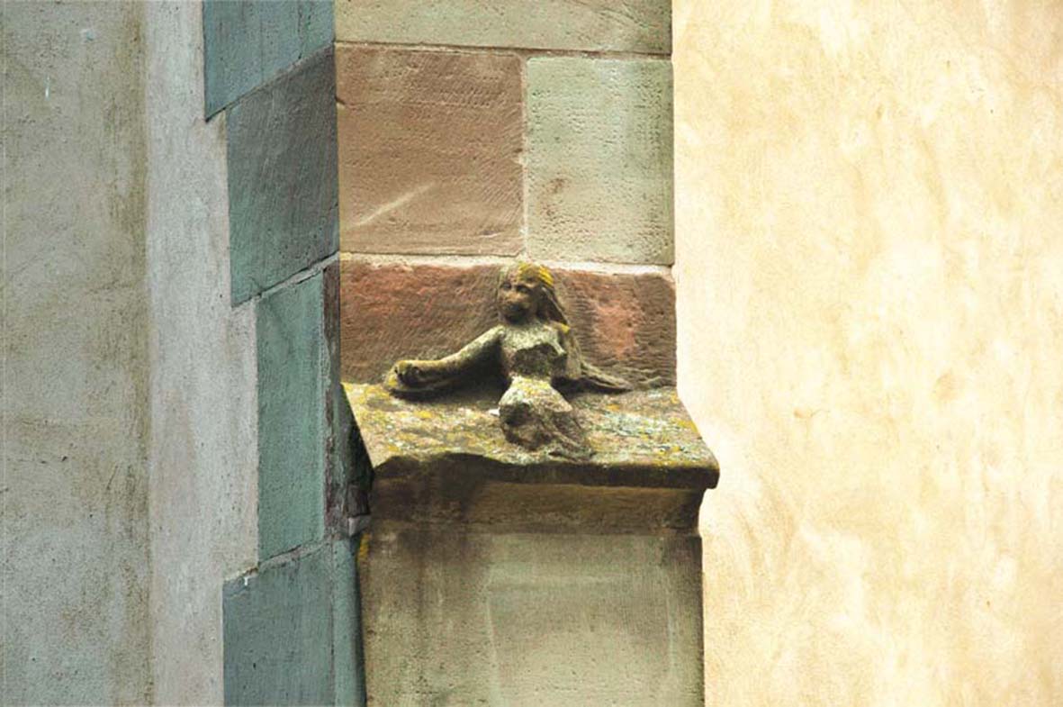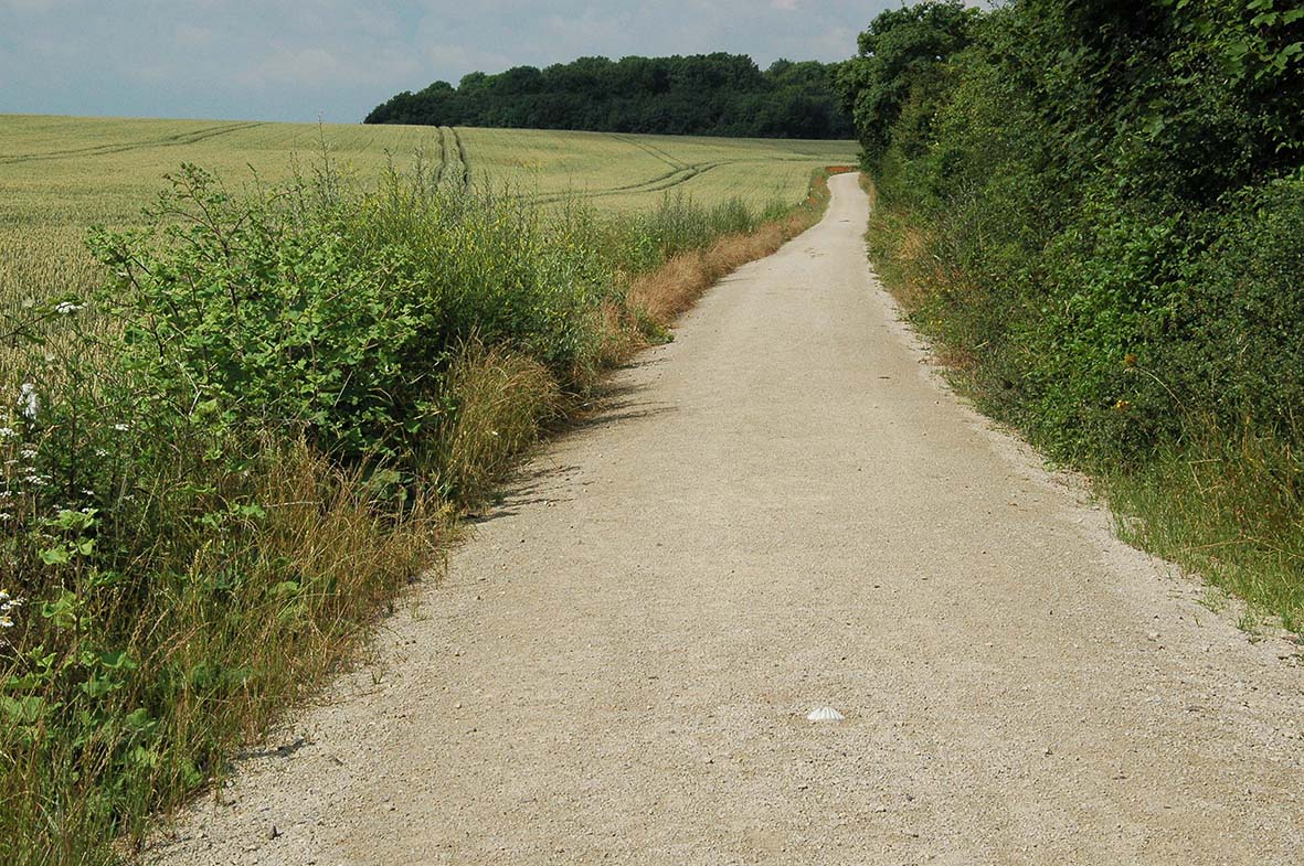 Den nächsten Jakobsmuschelstein Richtung Metz finden Sie in Welferding (Wölferdingen), Kirche St. Walfrid, ehem. Benediktinerpriorat der AbteiTholey, Turmuntergeschoss und Schallarkaden aus dem 13. Jahrhundert.