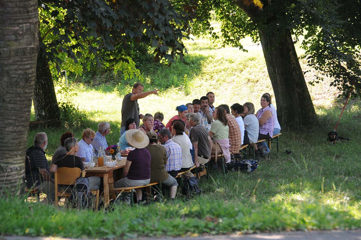 Das Haus bietet die Möglichkeit, in historischer Umgebung Gruppen zu beköstigen. Wir empfehlen wir unseren Gästen das traditionelle Pilgermahl: Kartoffelsuppe im Brotteig. Gruppen ab 5 Personen können die Kartoffelsuppe bestellen. Kaffee und Kuchen sowie Flammkuchen mit einem Gläschen Wein können ebenso auf Vorbestellung angeboten werden.