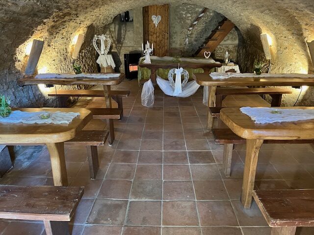 Der historische Gewölbekeller bildet das Herzstück des Anwesens und bietet eine ganz besondere Atmosphäre für standesamtliche Trauungen. In dem liebevoll erhaltenen Gewölbe haben sich bereits zahlreiche Brautpaare das Ja-Wort gegeben und den Beginn ihres gemeinsamen Lebensweges gefeiert. Das einzigartige Ambiente aus Naturstein, Gewölbebögen und historischer Bausubstanz verleiht jeder Trauung einen festlichen und zugleich authentischen Rahmen.