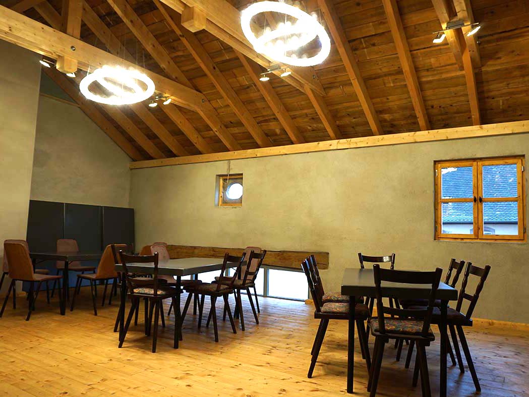 Auch der Scheunenteil des Gebäudes lädt zum Verweilen ein. Der etwa 40 Quadratmeter große Festraum eignet sich hervorragend, um Gäste nach der Trauung mit einem Glas Sekt und einem kleinen Imbiss zu empfangen. Die rustikale und zugleich einladende Gestaltung verbindet den Charme früherer bäuerlicher Nutzung mit einer angenehmen Umgebung für gesellige Begegnungen.