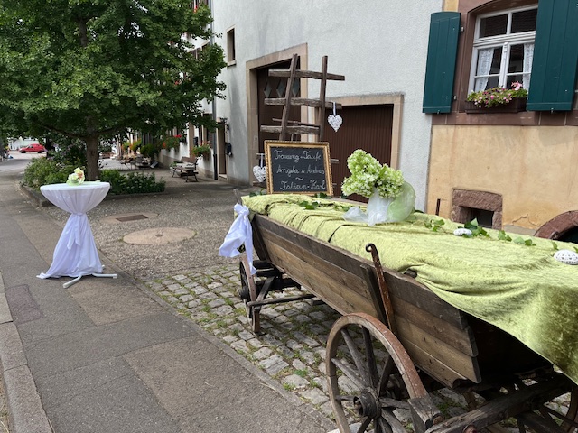 Auf Wunsch kann im Anschluss an die Trauung ein kleiner Empfang für die Gäste organisiert werden. Neben dem Gewölbekeller steht hierfür auch der gemütliche Innenhof zur Verfügung, der insbesondere bei schönem Wetter eine stimmungsvolle Kulisse für einen Umtrunk oder einen kleinen Sektempfang bietet. Die historische Umgebung schafft dabei eine besondere Atmosphäre, die viele Besucherinnen und Besucher begeistert.