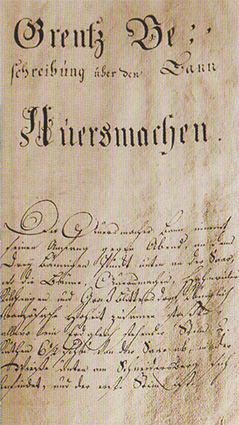 Die im Jahr 1786 erstellten Grenzbeschreibungen über den Bann Auersmacher lassen vermuten, dass dem Erbauer nur eine vorgegeben, vermutlich schlauchartige Parzelle für den Bau des Bauernhauses zur Verfügung stand (Zeilenbeabuung nach lothringischer Art).